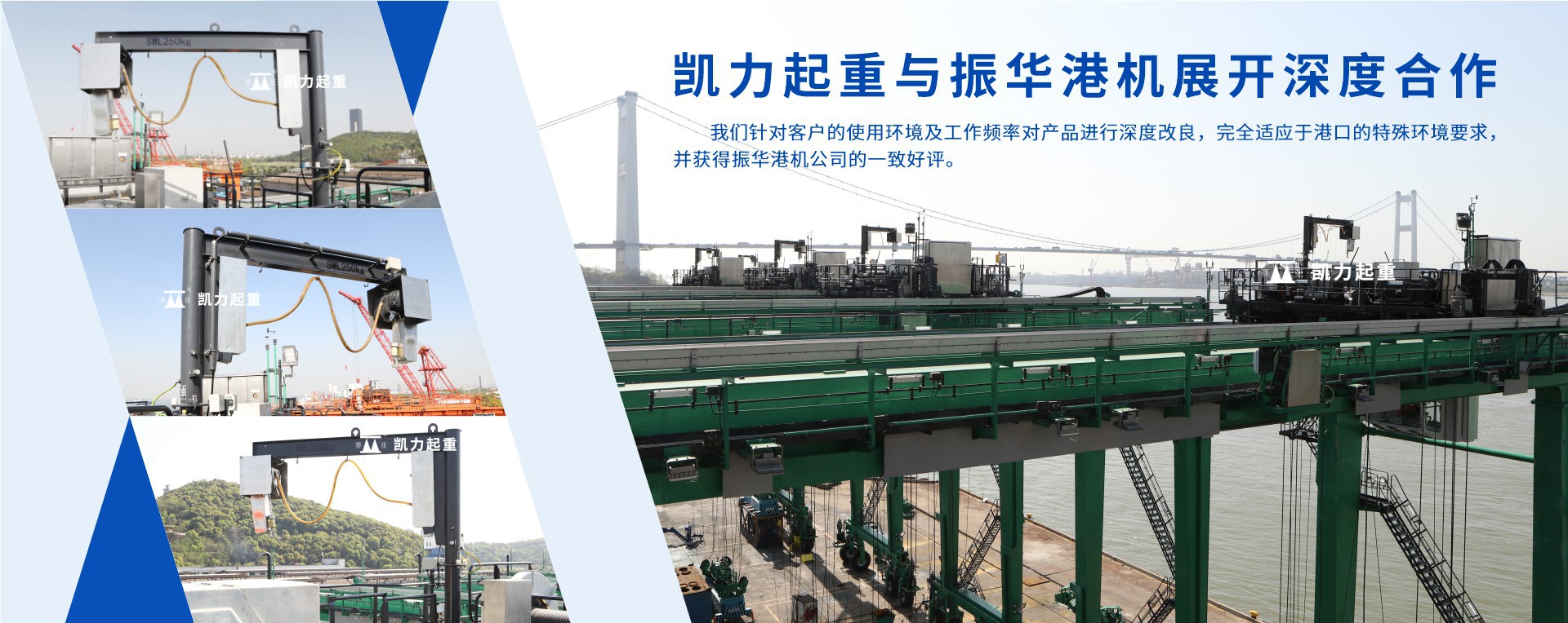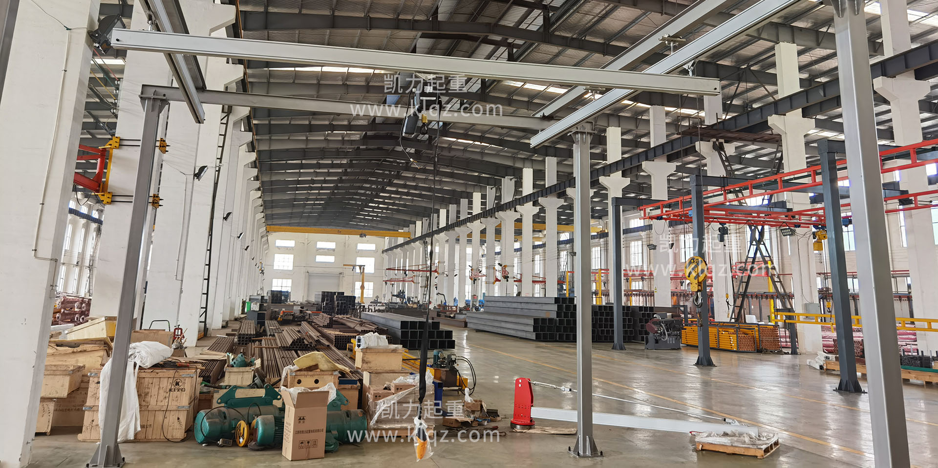 江陰市凱力起重電機(jī)有限公司專業(yè)生產(chǎn)JPKK型系列環(huán)鏈電動(dòng)葫蘆;鋼絲繩電動(dòng)葫蘆;(立柱式、定柱式、移動(dòng)式、墻壁式、壁行式、曲臂式、雙臂式)旋臂起重機(jī)(懸臂起重機(jī)、懸臂吊、旋臂吊);JKBK柔性輕型組合式懸掛起重機(jī)(單軌、單梁、雙梁、伸縮梁、堆垛機(jī)等)的起重設(shè)備專業(yè)制造公司,產(chǎn)品廣泛應(yīng)用于機(jī)械制造、冶金、電力、鐵路、水利、港口等多個(gè)行業(yè)。為滿足客戶需求,可設(shè)計(jì)生產(chǎn)制造各種任意參數(shù)的非標(biāo)準(zhǔn)起重設(shè)備。